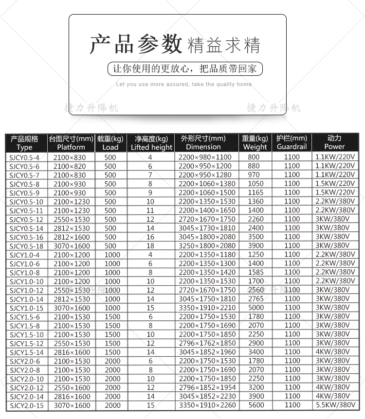 產物特色:本款起落平臺含有降低4米/6米/8米/9米/10米/12米/14米/16米/18米等各型號起落平臺。如需特別載重可定貨,按照需要可選用380V、220V、電瓶、燃油機為起落能源,特別場合也可選用防爆電器等,本類產物可選手動、電動兩用起落,也可選澤增添幫助行走裝配挪動加倍便利。